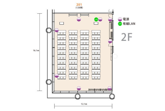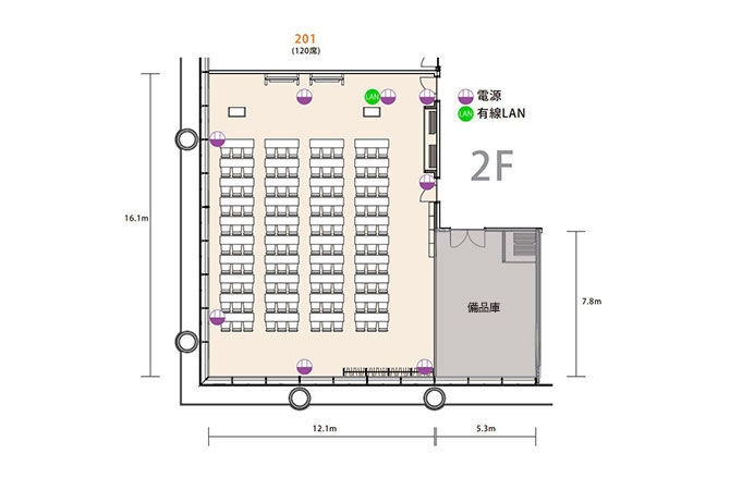 | 120名 | 208㎡ | 22,990円/1h | 20,691円/1h |