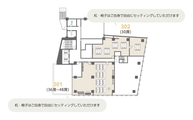 | 30名 | 88㎡ | 5,940円/1h | 5,346円/1h |