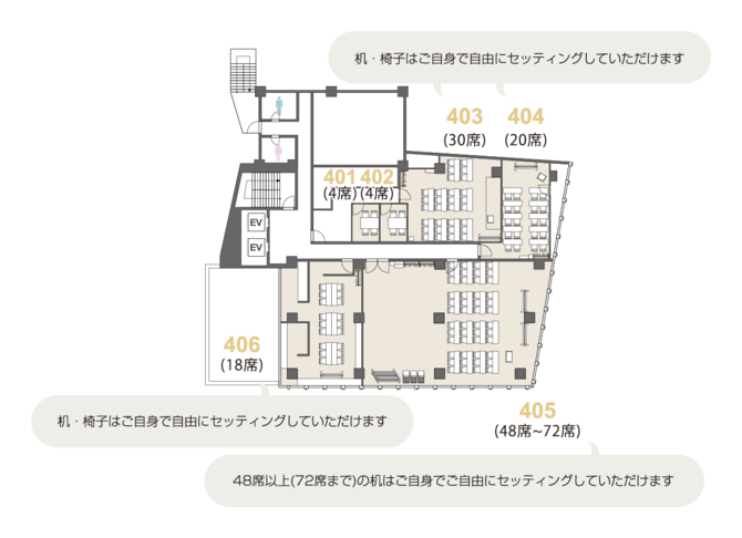 | 18名 | 60㎡ | 3,564円/1h | 3,207円/1h |