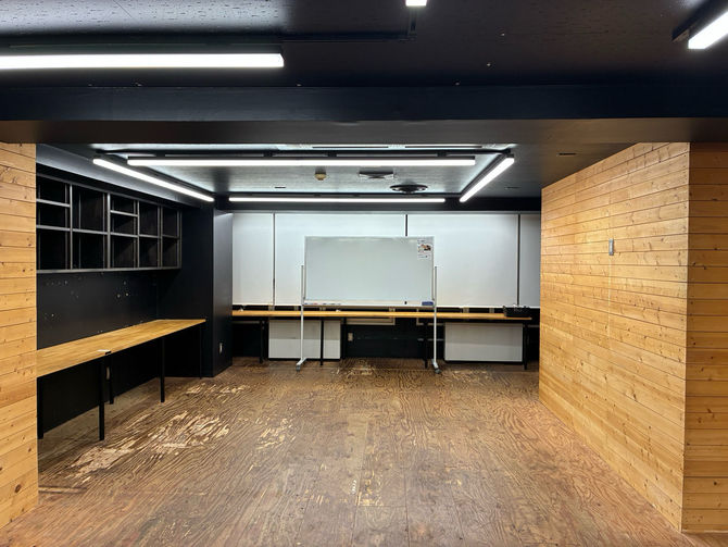 テーブル(3名掛け×6台)、椅子(18脚)、ホワイトボード(1台)、ハンガーラック(1台)、ハンガー、時計、インターネット回線(有線&無線LAN)、個別空調、延長コード(5m×5本)、LANケーブル(5m×1本) |