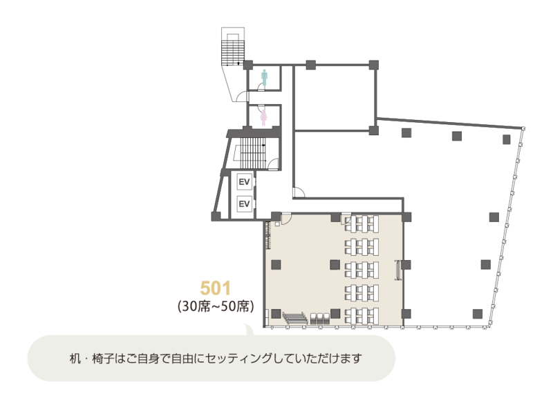 セミナー・研修・説明会・スクール・面接・商談・交流会・イベント・楽屋等、様々な用途でご利用頂けます。