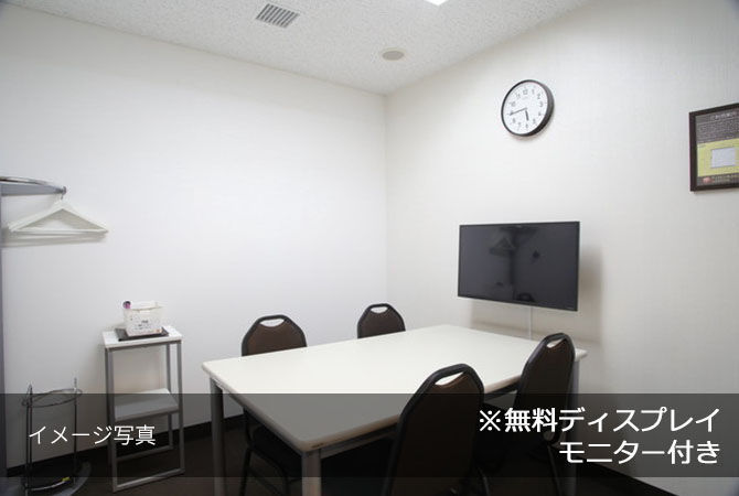テーブル(2名掛け×2台)、椅子(4脚)、ホワイトボード(1台)、ハンガーラック(1台)、ハンガー、傘立て、多目的台、時計(1個)、インターネット回線(有線&無線LAN)、延長コード(5m×1本)、LANケーブル(5m×1本)、HDMIケーブル(5m×1本)、ディスプレイモニター(27インチ) |
