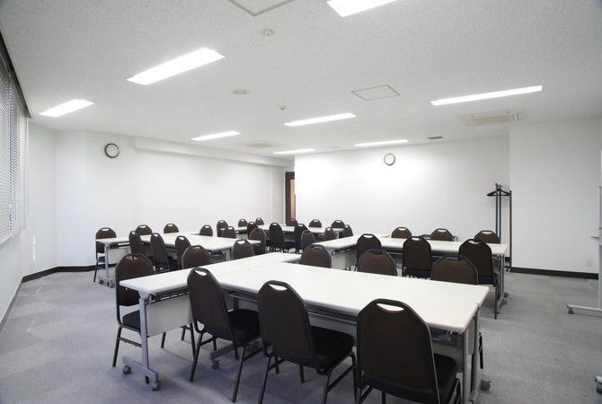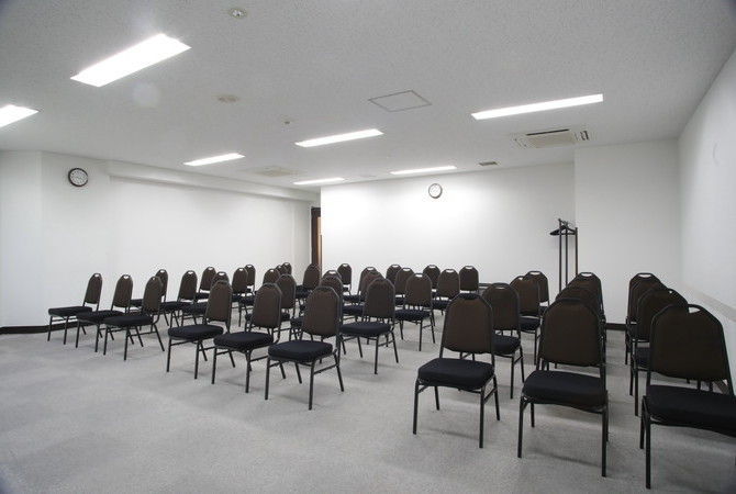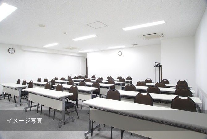 | テーブル(3名掛け×13台)、椅子(39脚)、ホワイトボード(2台)、ハンガーラック(1台)、ハンガー、傘立て、演台、多目的台、時計(2個)、インターネット回線(有線&無線LAN)、延長コード(5m×3本)、LANケーブル(5m×1本)、HDMIケーブル(5m×1本) |