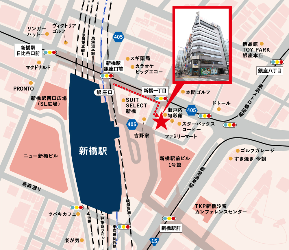 - 〒105-0004 東京都港区新橋2-19-10 新橋マリンビル3階5階